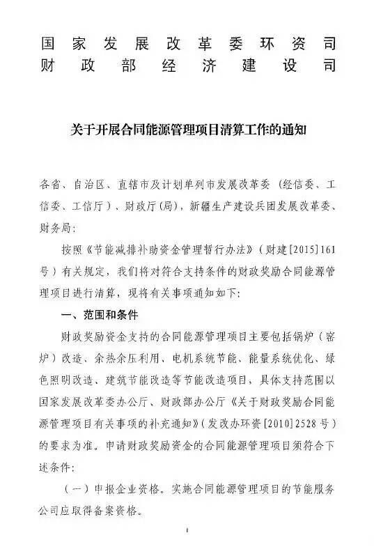 关于开展合同能源管理项目清算工作的通知